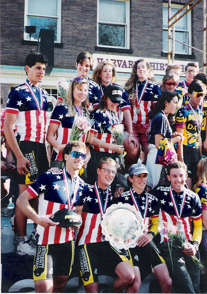 CUnatChampsAs I’ve followed the NCAA basketball tournament (join me and some folks from Radiolab tonight, as we live tweet the final game), I’ve been thinking about the value of collegiate sports. My first experience with sports in college came as an NCAA division I cross-country runner. I lettered in cross-country at the University of Colorado my freshman year, but a freak knee injury cut short my collegiate running career. Though I had no experience in the sport, I started training with my school’s Nordic ski team, and I also bought a bike and joined the cycling team.
